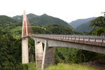 | 鮎の瀬大橋 | 平成11年8月4日に菅地区と白藤地区を結ぶ鮎の瀬大橋が開通しました。この橋は高さ140m長さ390mのY字橋脚と斜張橋との複合型でとてもめずらしい橋です。 また橋のたもとには鮎の瀬交流館があり、地元「菅」地区でとれた新鮮な野菜・良質の米・加工品などの販売を行っています。 |