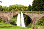 | 通潤橋 | | 日本最大の水路橋『通潤橋』です。『通潤橋』は人を渡す橋ではなく、橋の上に石造パイプを3列並べた通水管を通し水を渡す水路橋です。文化史上極めて重要な建造物と認められ、文化財保護法の規定により国の重要文化財に指定されています。土・日曜日・祝祭日の正午に放水を見ることができます。 |